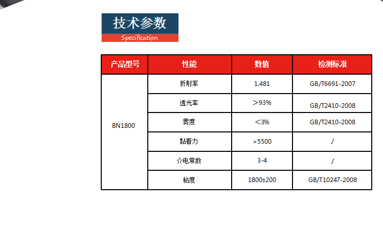 (通LO用CA型液系态列光学胶 BN1800)